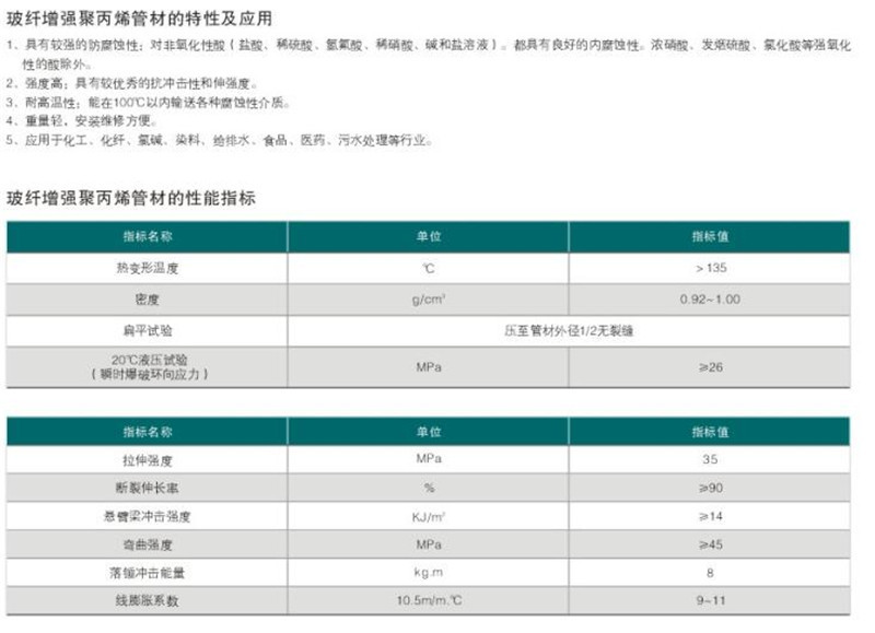(1)玻纖增強聚丙烯管材、管件(FRPP);